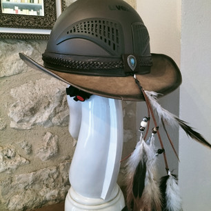 Uvex Exxential II brown helmet, light brown leather hat with dark gradient edges.